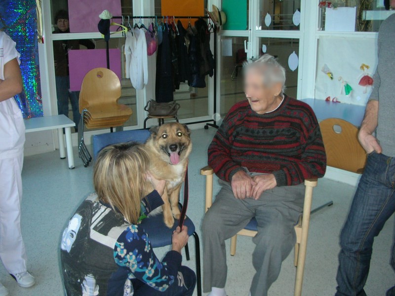 Apash, femelle berger d'Islande, et Dominique en visite à Lyon-Sud