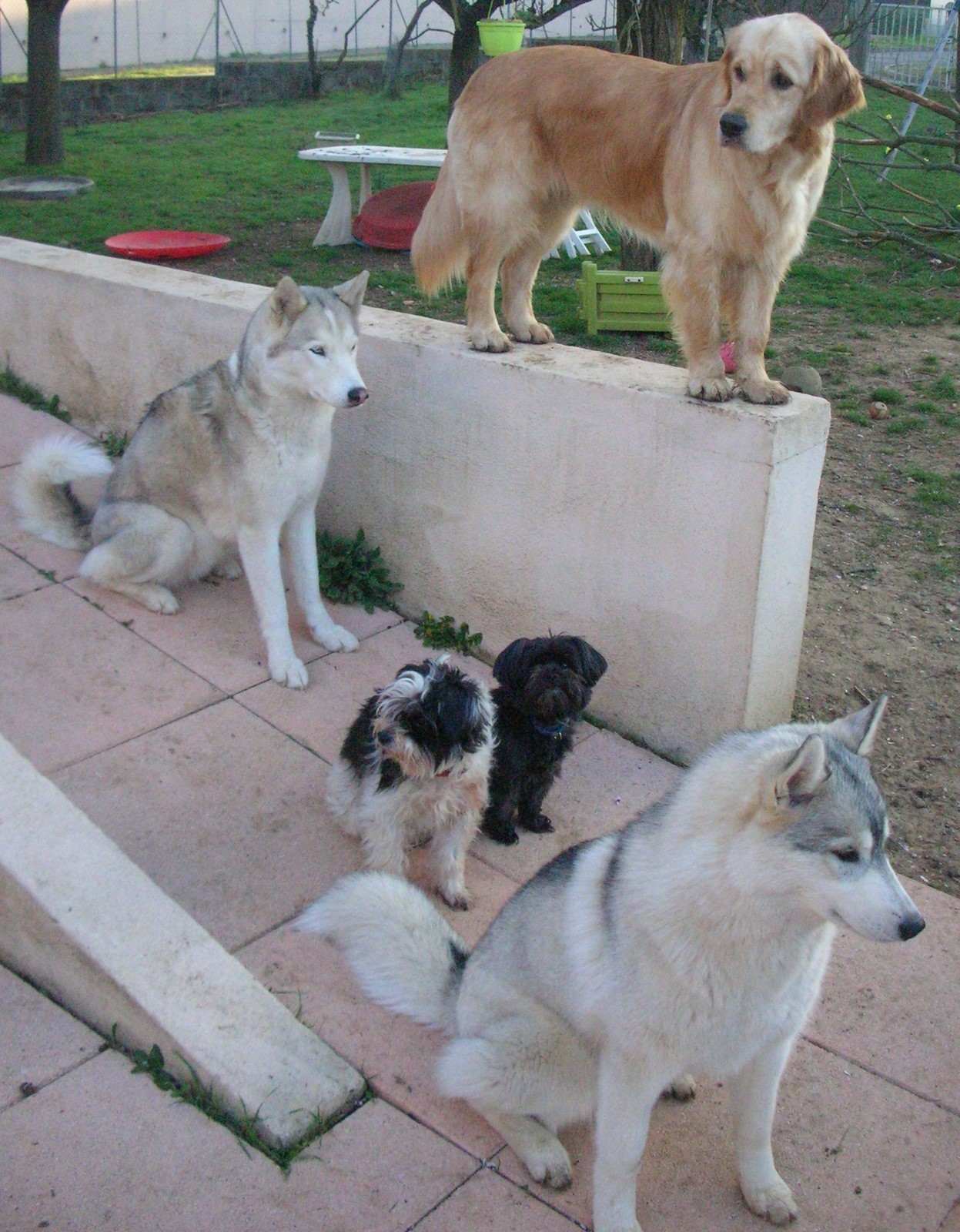 Les chiens visiteurs Okinawa, Plume, Lily, Pomme et Mousse
