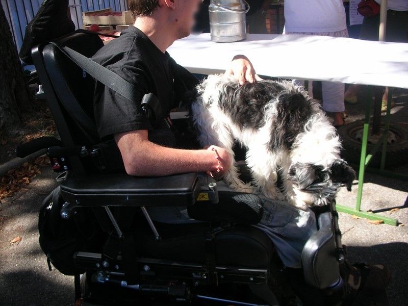 Le chien visiteur Plume sur les genoux
