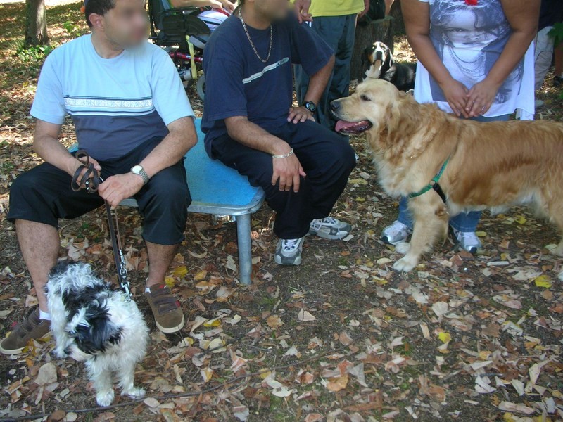 Pause de fin d'après-midi, le chien visiteur Dali au fond