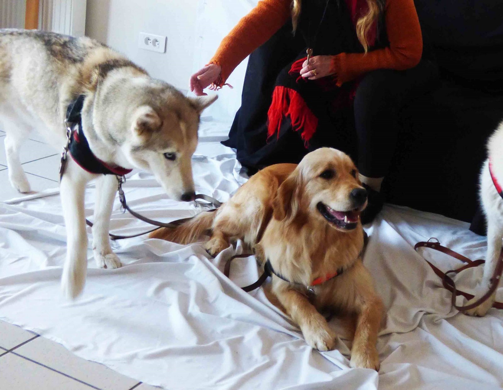 Visite de nos chiens visiteurs à Saint-Cyr au Mont d’Or, FAM des Cabornes le 21/03/2019, il a été prévu une séance-photos avec les résidents qui le souhaitent.