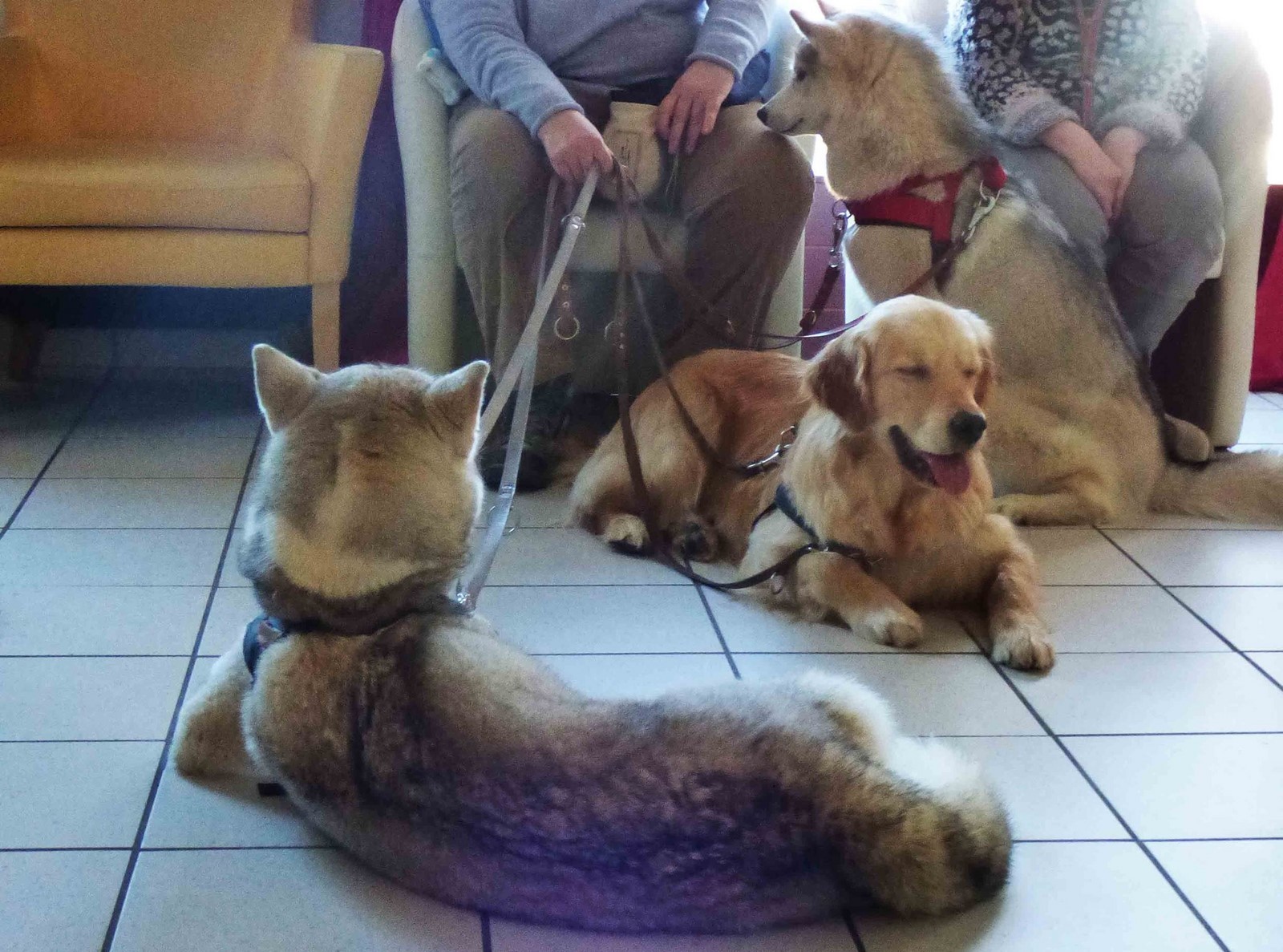 Visite de nos chiens visiteurs à Saint-Cyr au Mont d’Or, FAM des Cabornes le 21/03/2019, il a été prévu une séance-photos avec les résidents qui le souhaitent.