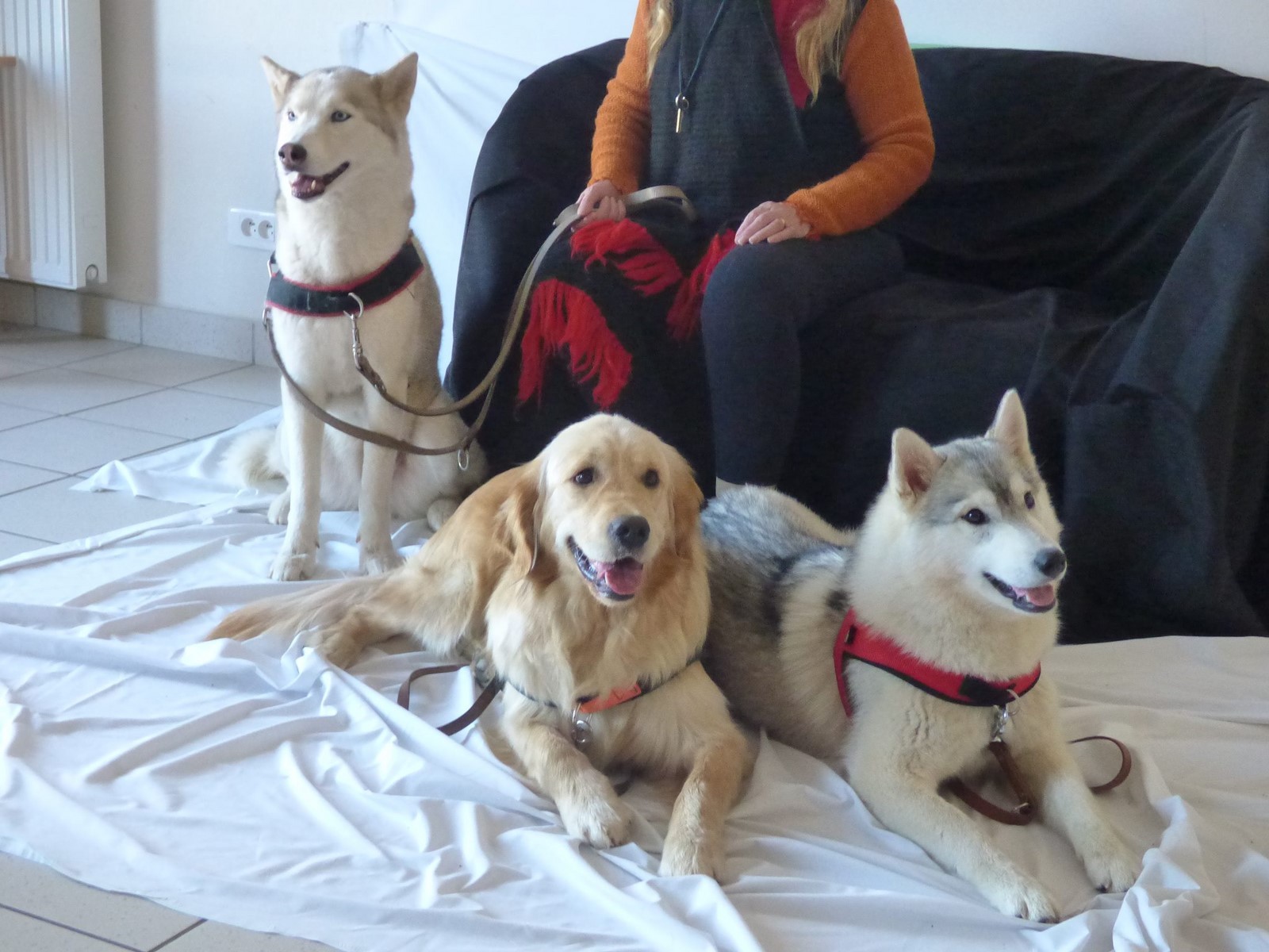 Pomme enfin plus à l'aise assise, Mousse et Okinawa couchées calmes