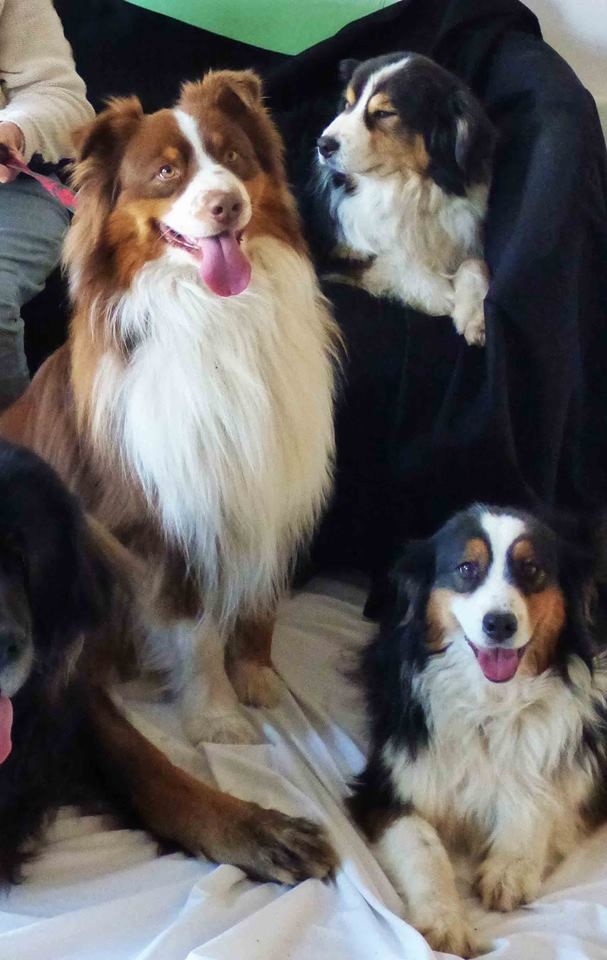 Erine la chienne sur le canapé n'est pas très à l'aise et détourne le regard