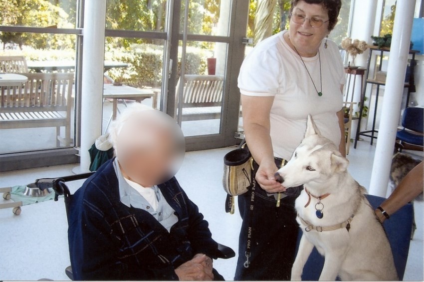 Pomme chien visiteur à l'Hôpital Lyon-Sud